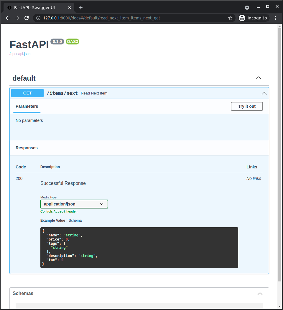 items的字典,items是数据类列表;FastAPI 仍能把数据序列化为 JSON;